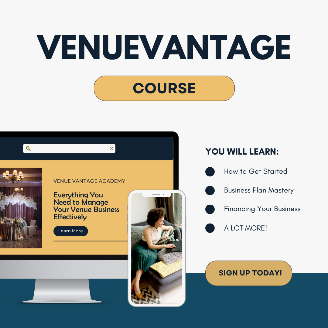 Don't let the challenges of the venue business hold you back. This 12-week online course & coaching program will help new venue owners compete to learn the processes needed to start and operate an event venue to stay booked and busy.